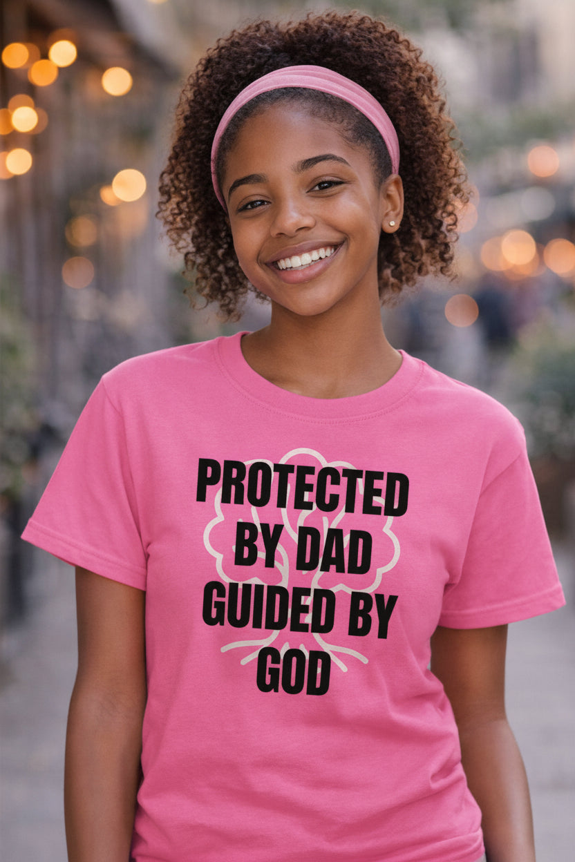 Christian Kids T-Shirt – Protected by Dad, Guided by God